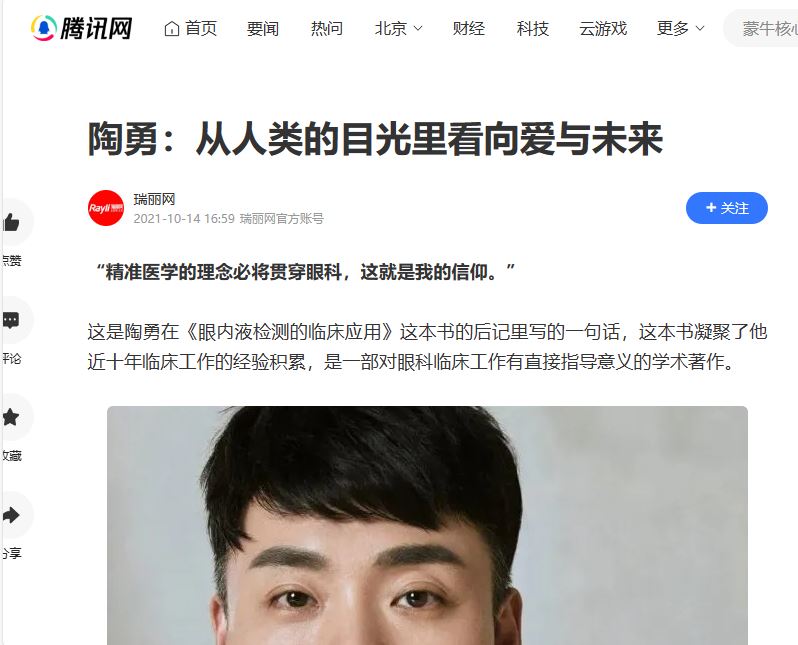 20211014【腾讯网】陶勇:从人类的目光里看向爱与未来