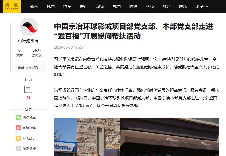 20200903【搜狐】中国京冶环球影城项目部党支部、本部党支部走进“爱百福”