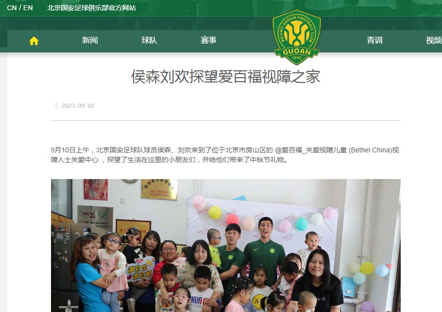 20210910【北京国安足球】侯森刘欢探望爱百福视障之家