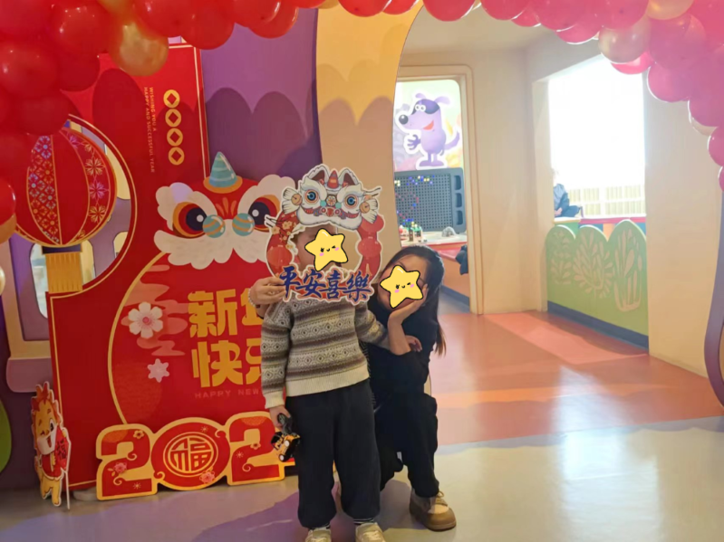 儿童探索馆里年味十足,娃娃家旁喜庆的福字贴满墙面,寓意新的一年里爱心与福气相伴孩子们成长,大家也纷纷驻足合影留念。